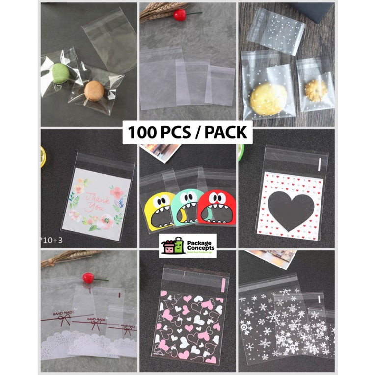 100PCS OPP Cookie Plastic Pouch w/ Adhesive