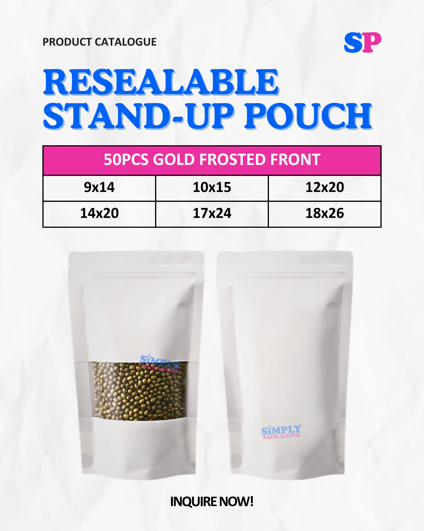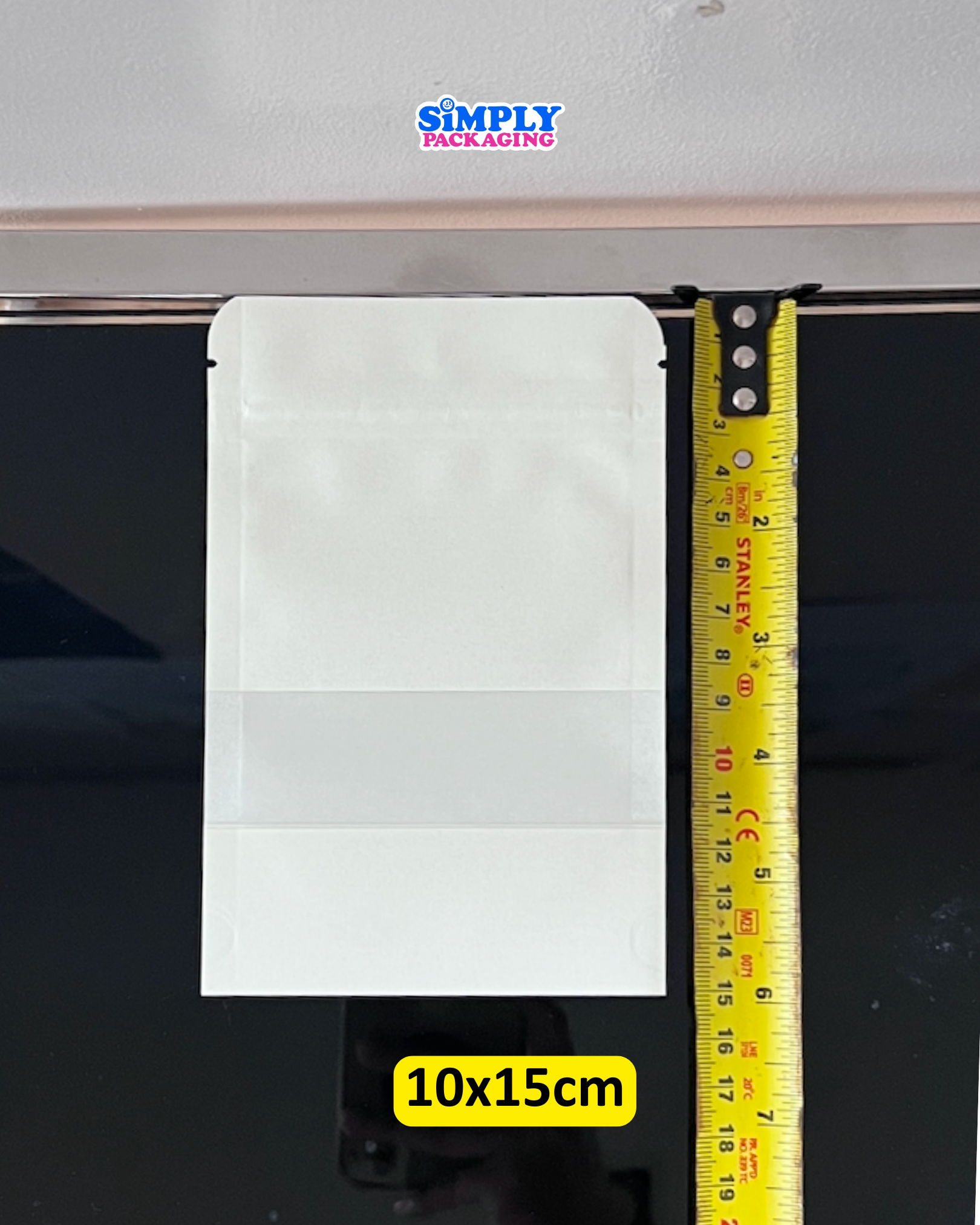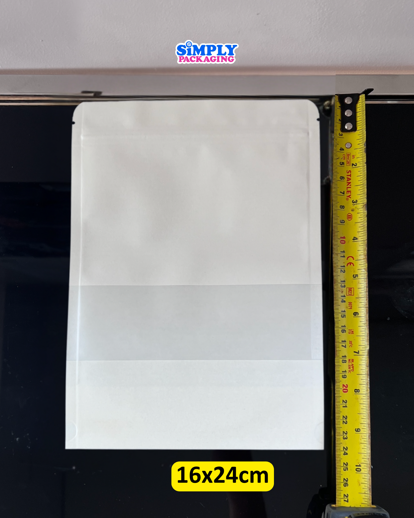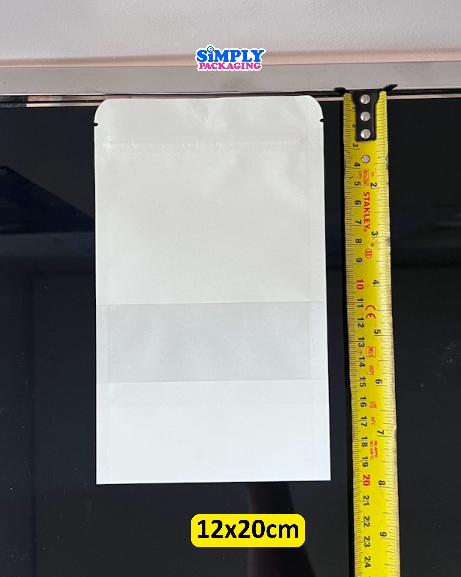 50PCS White Resealable Stand Up Pouch with Window | Simply Packaging