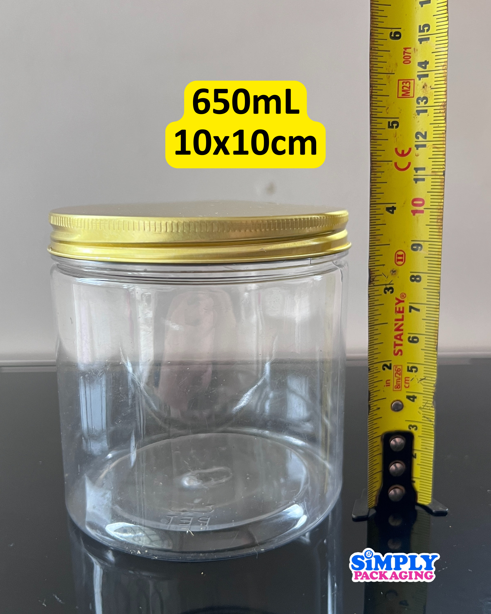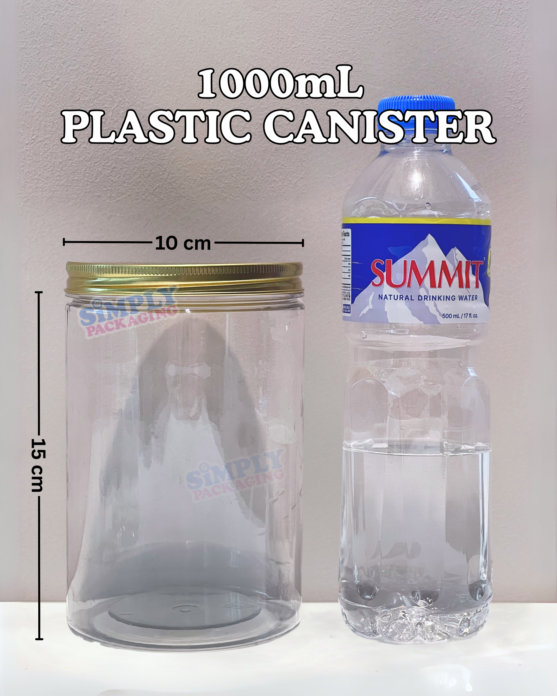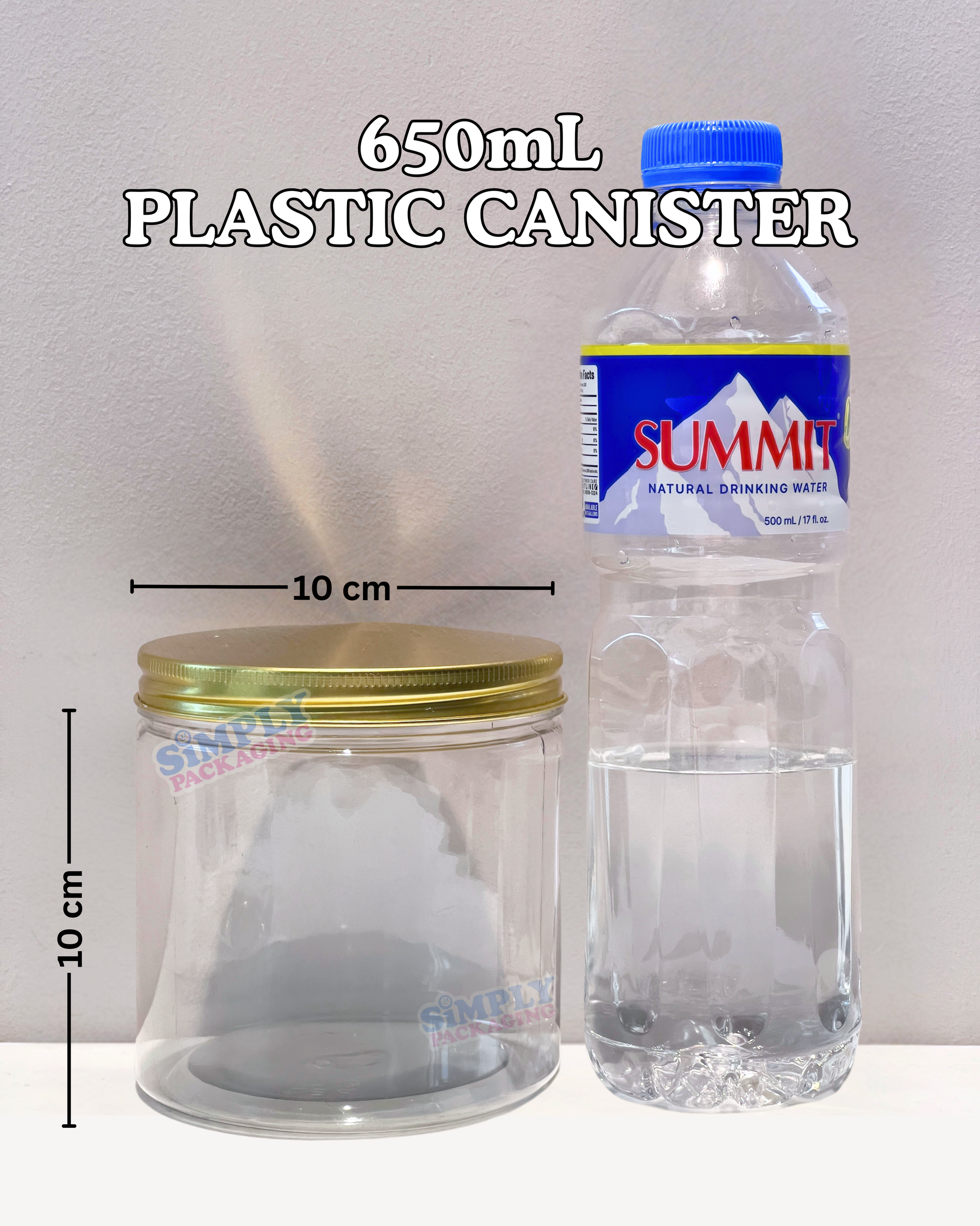 Plastic Canister with Gold Aluminum Lid | Simply Packaging
