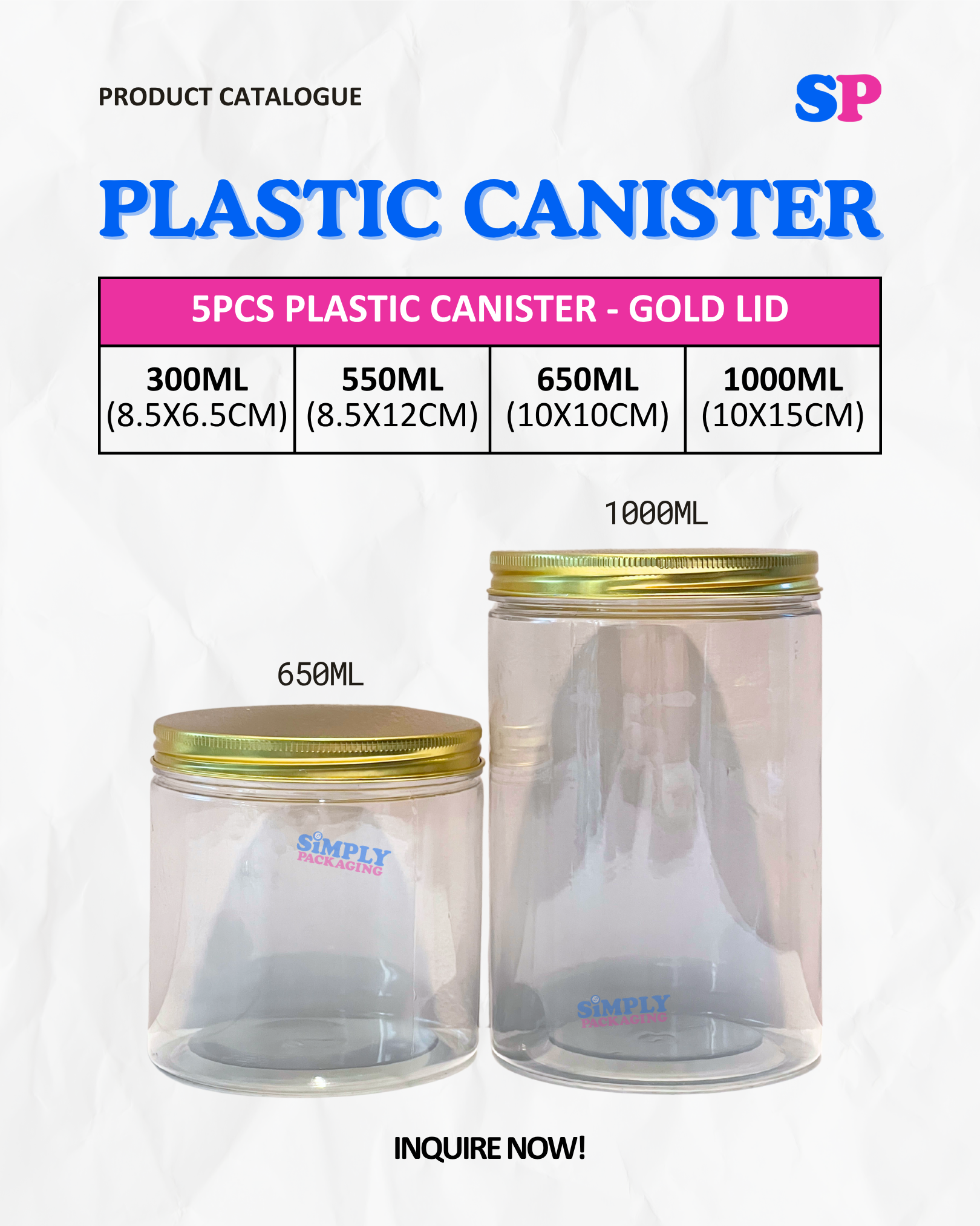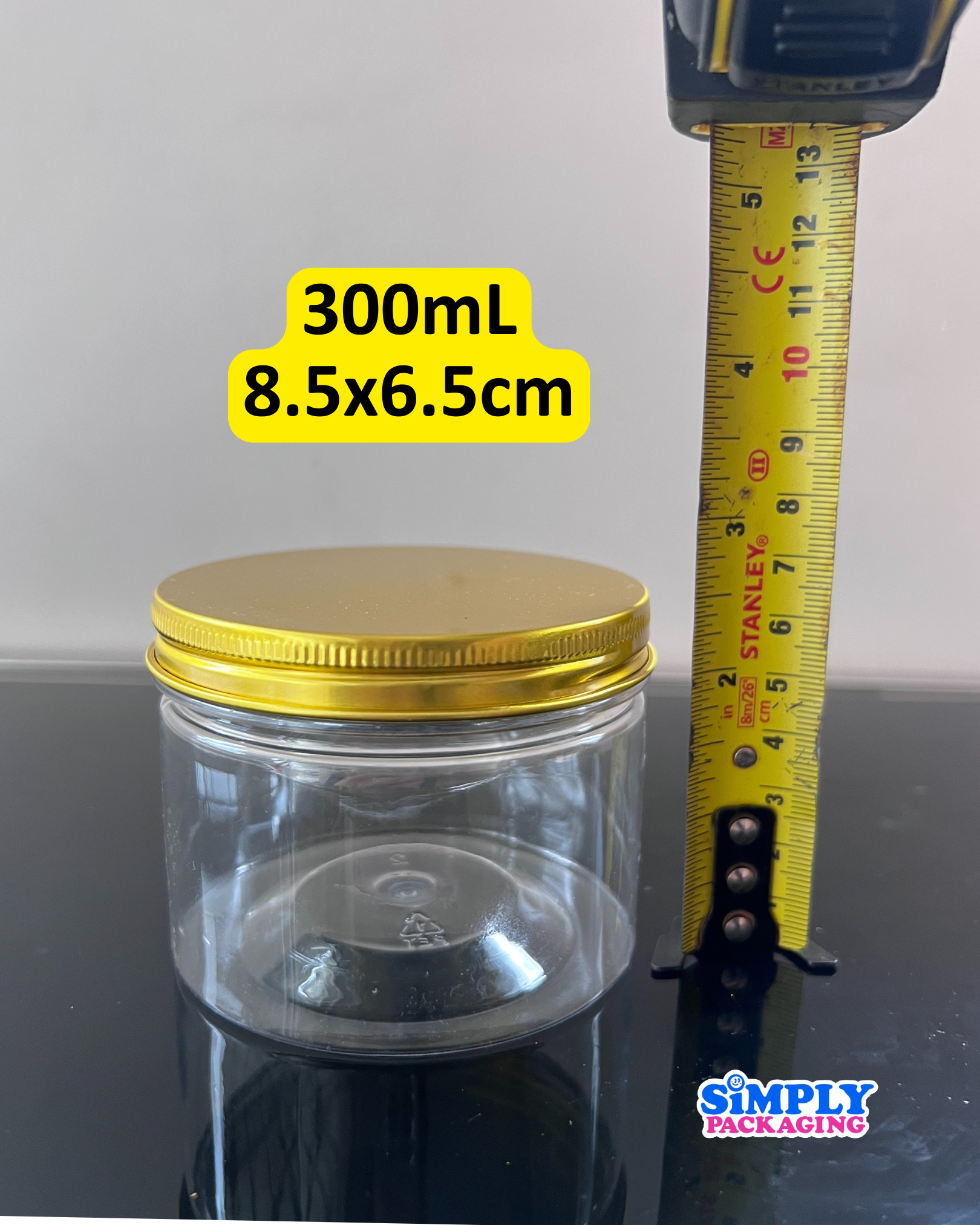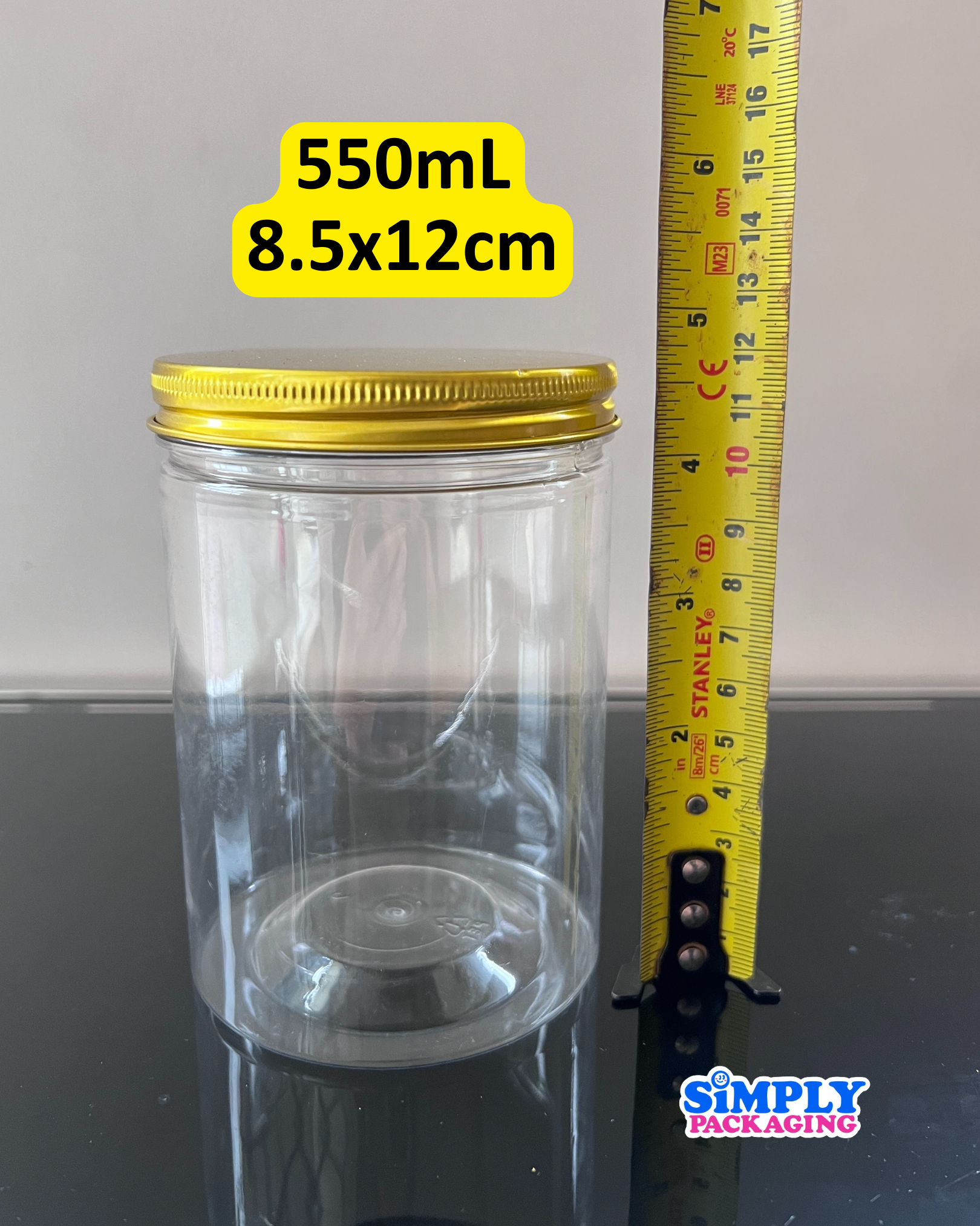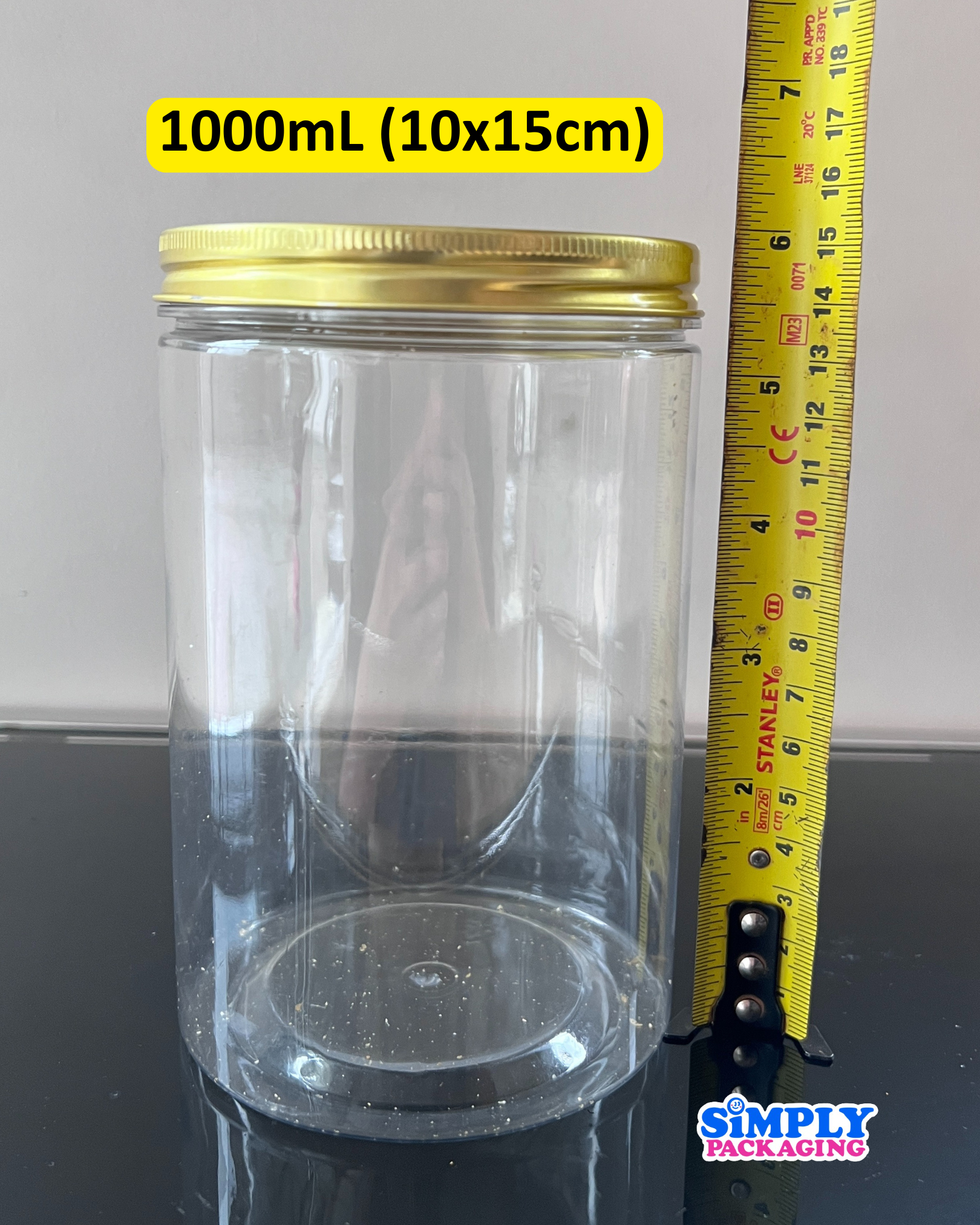 Plastic Canister with Gold Aluminum Lid | Simply Packaging